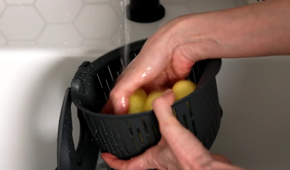 Simply attach the Thermomix® Blade Cover & Peeler accessory, add 21 oz of water, a maximum of 28 oz of raw root vegetables, and select the Peeler Mode – and say farewell to the hassle of peeling potatoes! The Peeler Mode is ideal for potatoes and a variety of root vegetables.