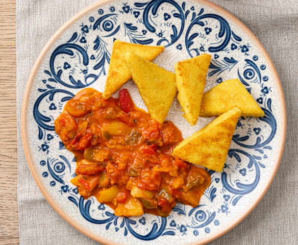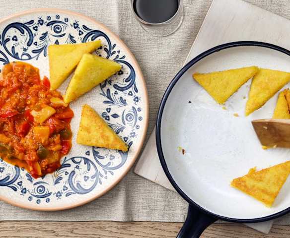 Gebratene Polenta mit Letscho