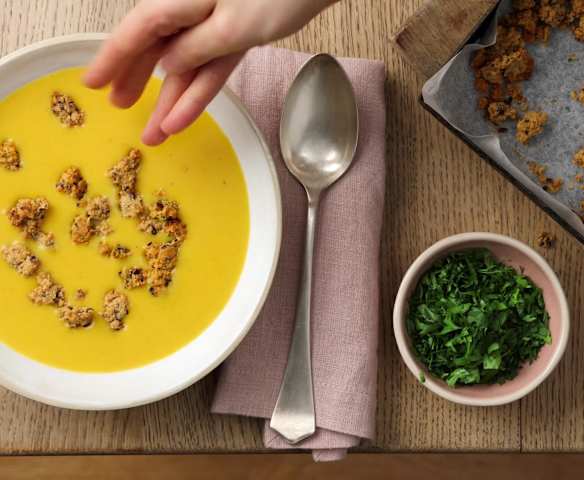 Schwarzwurzel-Hafer-Suppe mit Bohnengranola